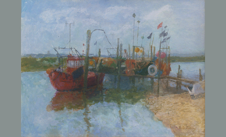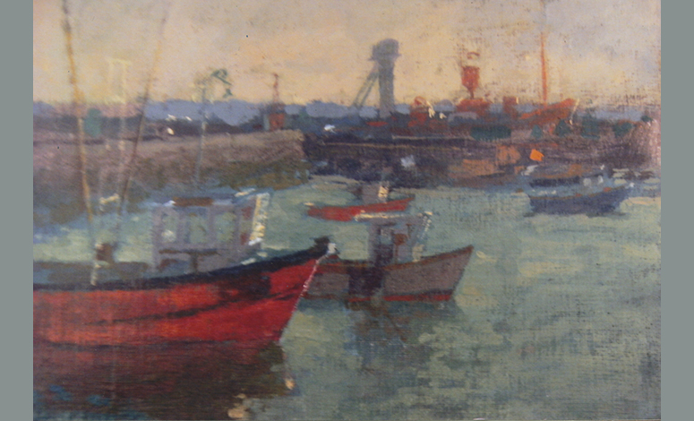 Includes beaches, Old Harwich, Suffolk docks and vessels; fishing boat and life boats. These are paintings of grey days and evening studies waiting for the night light.
